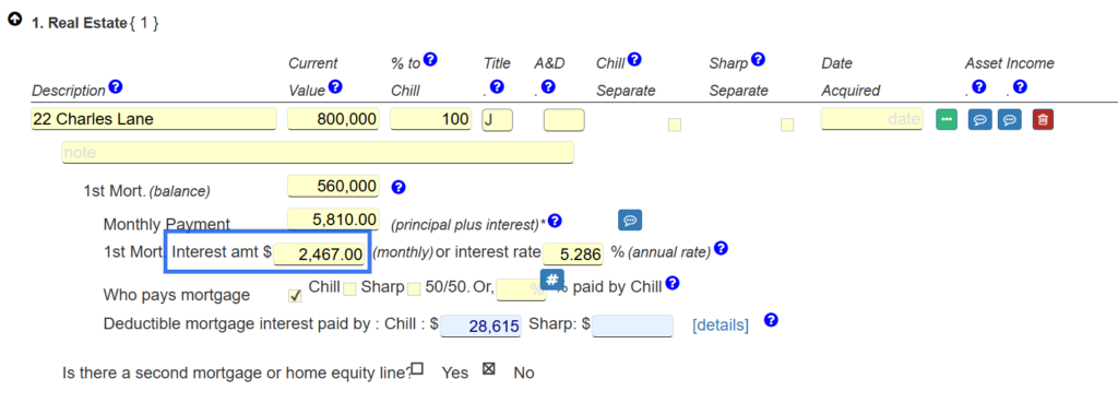 - If the first party named in the software is the respondent in a case, and there is a residence that’s separate property, the mortgage on the property will now appear in the correct party’s column.