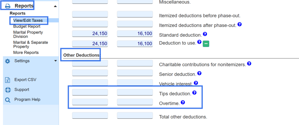 Family Law Software will automatically compute the tax deductions for tip and overtime income received in 2025 through 2028.